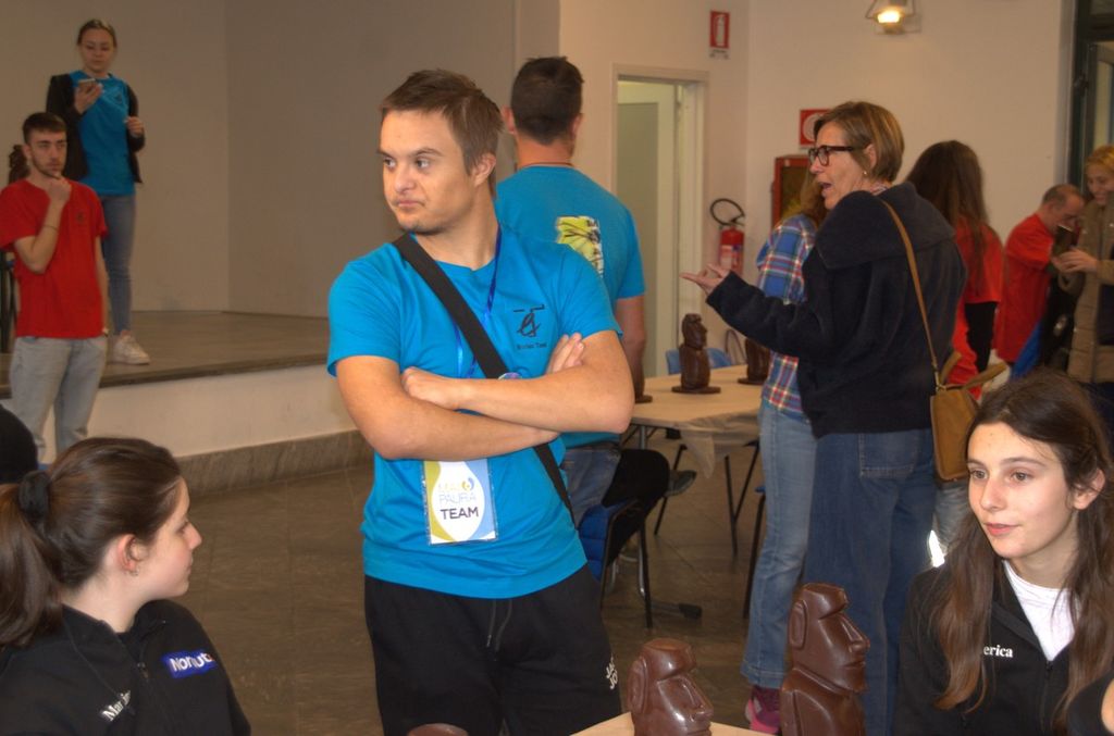 Da qui è partita l'entusiasta attività di Fabio Longhin, che ha subito coinvolto l'Istituto Tecnico Enrico Tosi di Busto, «all'inizio ci hanno dato 25 ragazzi, oggi ne abbiamo qui circa 50, ogni mercoledì da gennaio hanno lavorato a questo progetto come volontari, hanno portato a compimento l'evento. Alla prima riunione, nessuno è salito sul palco, abbiamo fatto un grande cerchio perché siamo tutti parte di questo ingranaggio, è una connessione tra alcune abilità». Anche la base su cui poggiano le sculture è stata realizzata nel rispetto della inclusività: è composta, infatti, dal cioccolato e dalla farina evolutiva del campo "adottato" da Fabio, un prodotto che deriva dall'integrazione di più semi di grano.