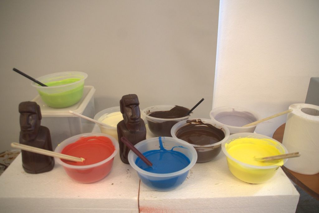 200 MOAI, quindi, che hanno riempito la sala del Museo che ha ospitato l'evento di un intenso, avvolgente profumo di pregiato cioccolato e che, prima di essere decorati, sembravano pezzi di un'immensa scacchiera disposti in ordine, pronti per una nuova partita.