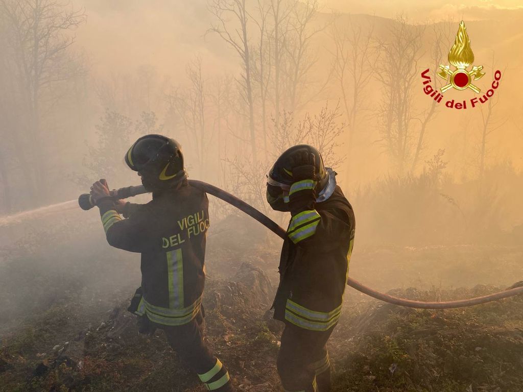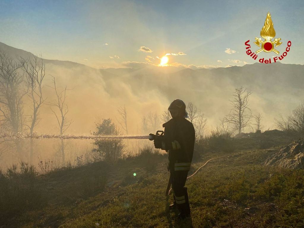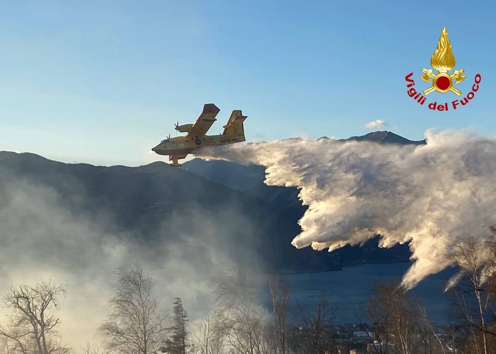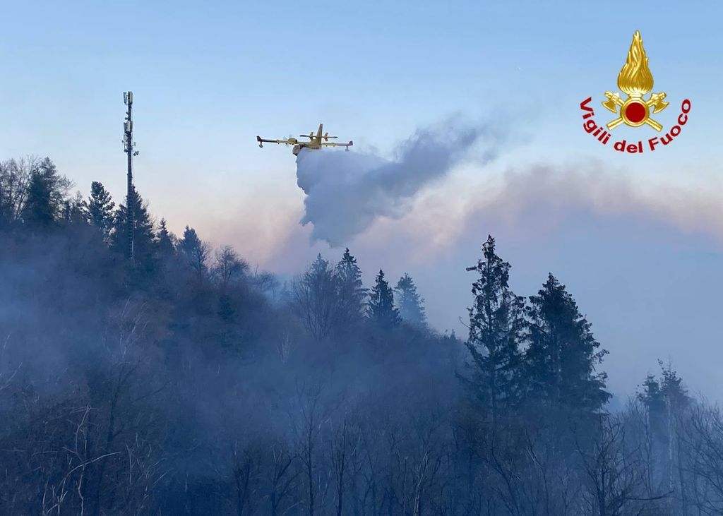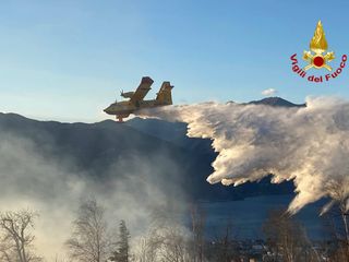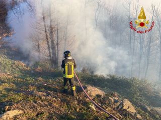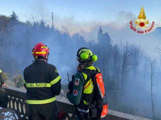 Vegetazione a fuoco a Montegrino Valtravaglia, in località chiesa di San Martino. Sul posto i vigili del fuoco di Luino e Laveno, oltre ai volontari dell'Aib e un aereo decollato da Albenga. Operazioni rese complicate dalle raffiche
