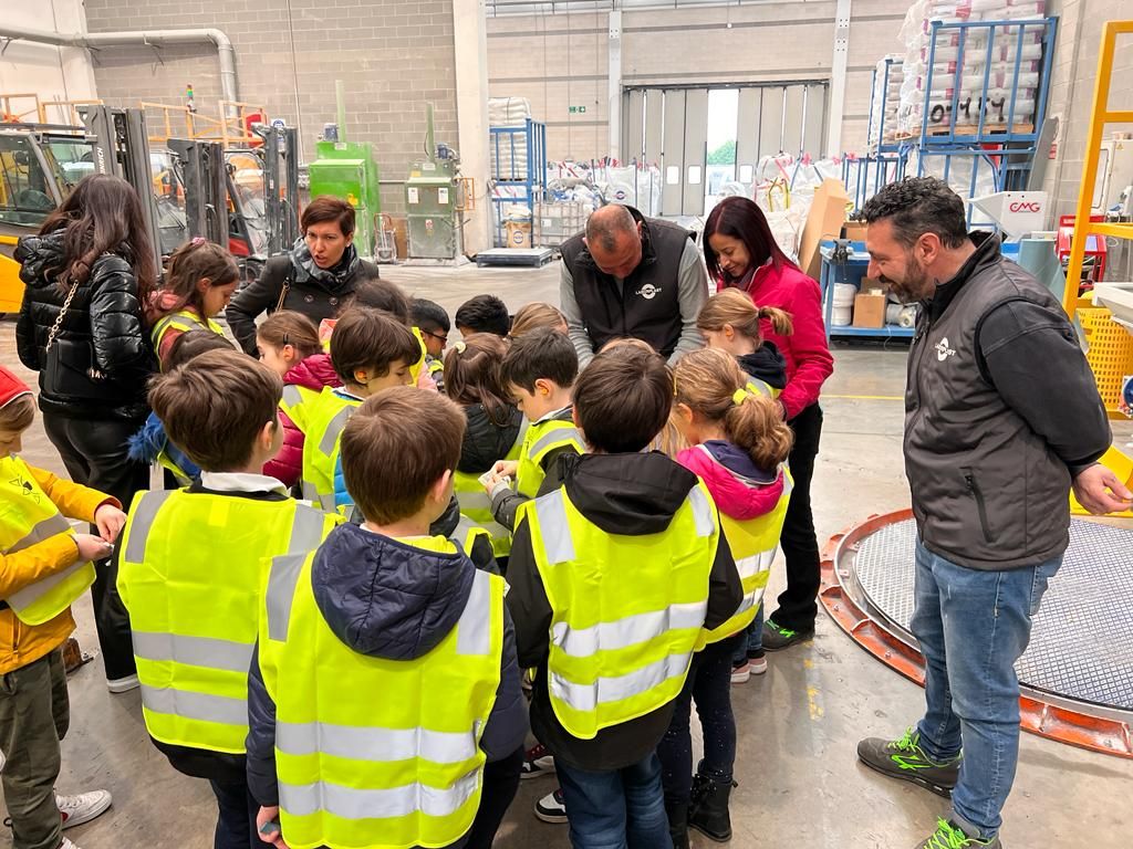 I bambini sono stati accompagnati nei diversi reparti dell’azienda che dal 1958 si occupa della produzione di tubi, granuli e semilavorati in PVC, alla scoperta delle fasi di lavorazione di questo materiale che troviamo in molti degli oggetti che utilizziamo quotidianamente. Il PVC è infatti uno dei materiali plastici più diffusi e di più difficile rigenerazione.
