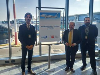 Ad attenderlo al gate il responsabile Aviation, Marketing, Negotiations & Traffic Rights della direzione Aviation Business Development, Aldo Schmid, con il rappresentante del vettore in Italia Luigi Bordoni che hanno tagliato il nastro dando ufficialmente il via alla nuova tratta.