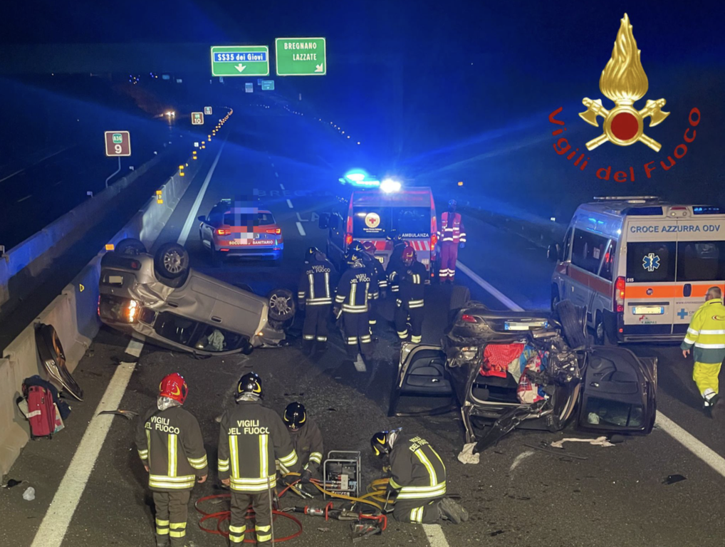L'allarme è scattato sull'A36 intorno alle 3.20 del mattino nel tratto tra l'innesto con l'A8 e l'uscita di Lazzate. Una persona portata in ospedale in codice giallo, altre due in codice verde