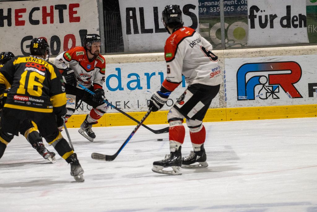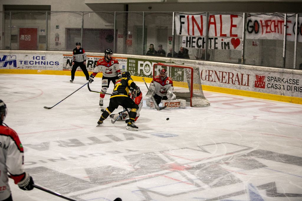 Reti: 7'39" R. Felderer (G. Vinatzer) 1-0; 24'29" M. Mazzacane (Desautels) 1-1, 32'11" G. Vinatzer (T. Virtala) in doppia sup. 2-1; 49'25" Bertin 2-2, 52'55" Franchini (Desautels, M. Mazzacane) 2-3, 59'29" M. Borghi (Piroso) 2-4 a porta vuota.