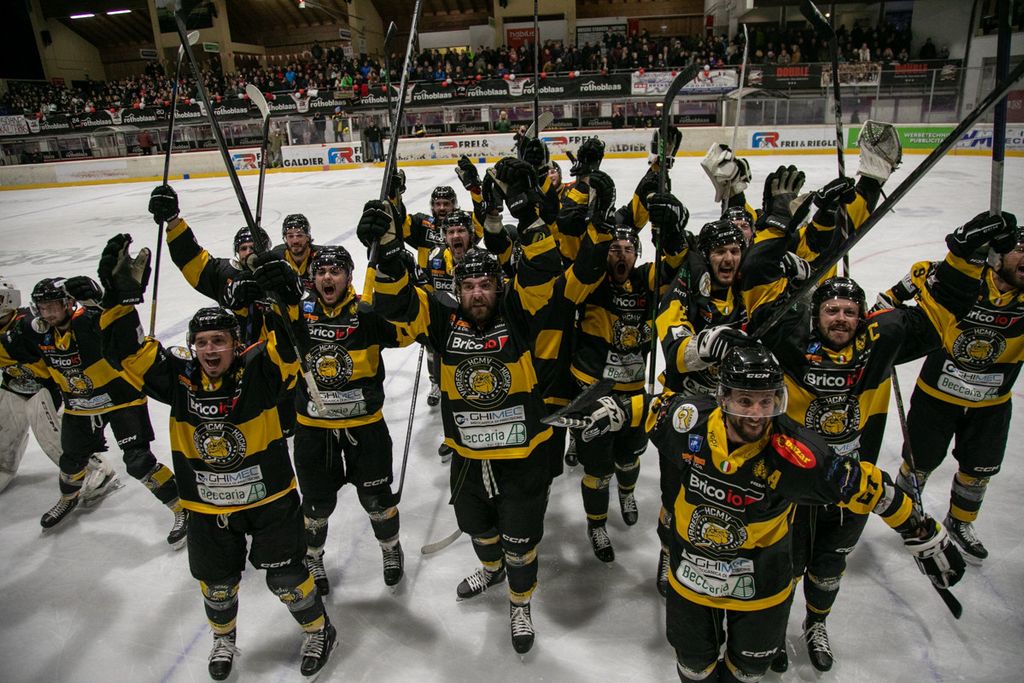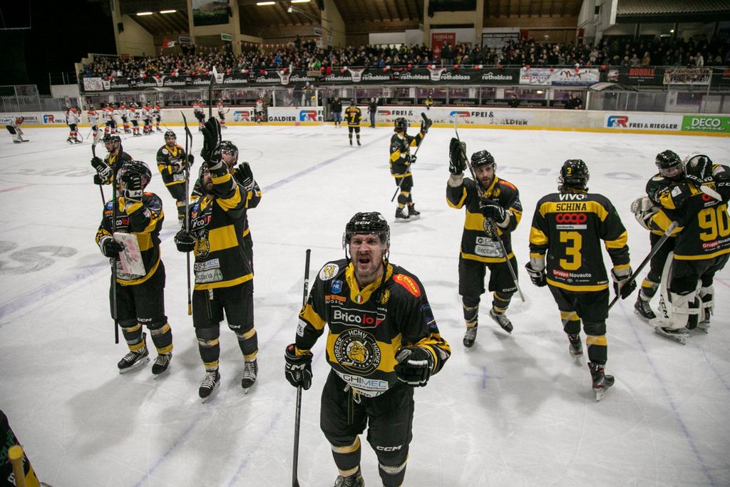 Volevano tornare a casa. E quando vuoi così fortissimamente una cosa, in qualunque modo la ottieni. I Mastini ce l'hanno fatta lasciandoci senza cuore: quello lo avevamo già lanciato sul ghiaccio da tempo. L'hanno fatto segnando tre gol negli ultimi dieci minuti, quando il Caldaro sul 2-1 si sentiva già in mano il titolo dopo due tempi e mezzo di battaglia. Ma a questi uomini basta poco per indossare il mantello e diventare supereroi. Un mantello fatto di esperienza, sofferenza, alchimia e gente (per quella, il vero uomo in più, leggete le ultime righe). Basta una bordata di Bertin, un tocco del mago Franchini, un gol a porta vuota di Re Marcello I da Varese per condensare tutto ciò che sono questi Mastini in quelli che potevano essere gli ultimi 10 minuti della stagione. Sono un gruppo di persone che, anche se si trovassero singolarmente agli angoli più lontani del pianeta, sentirebbero una voce nell'anima che li chiama e dice: «I Mastini chiamano, hanno bisogno di voi». E accorerebbero. E vincerebbero. Sono una bella storia da raccontare. Parole spese bene, emozioni da condividere.