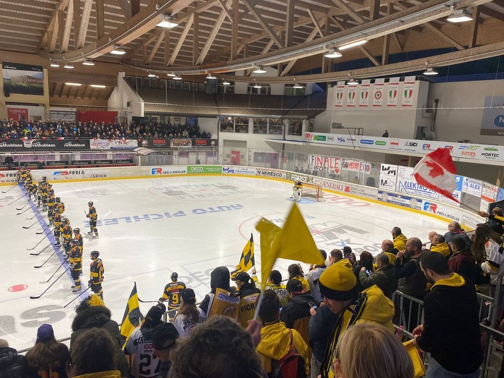28' Presenti in tribuna il presidente Gios e i vertici della Federghiaccio