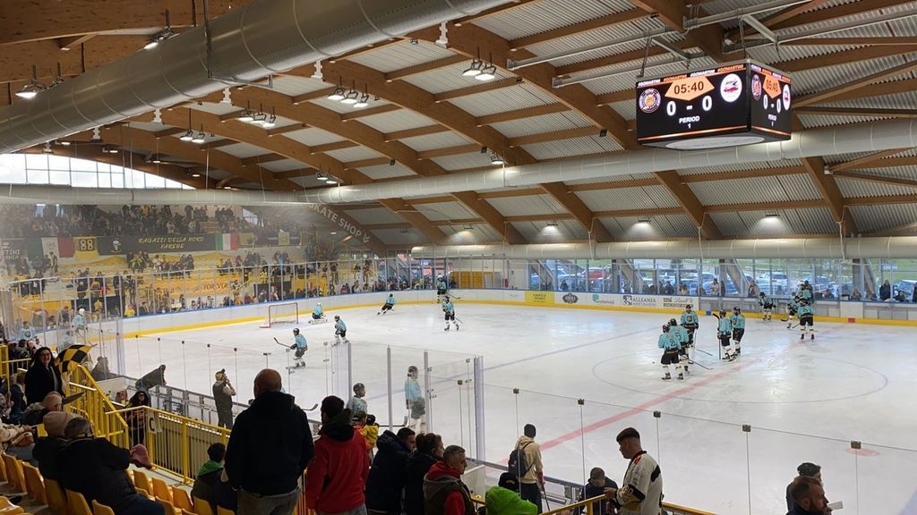 41' Ultimo tempo: occhio a chi segna per primo... Si torna sul ghiaccio mentre lo speaker spara "Sarà perché ti amo..."