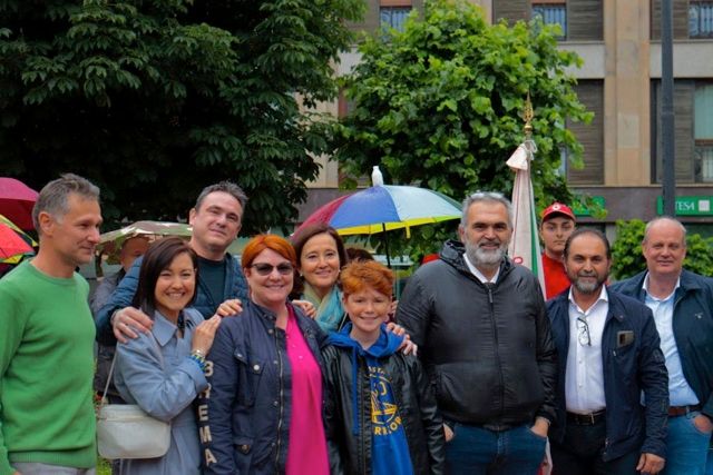 In gallery la panchina blu di Arcisate, la famiglia Silvestri con il sindaco Cavalluzzi e la volontaria Adiuvare Michela Petino insieme a Daniele Silvestri