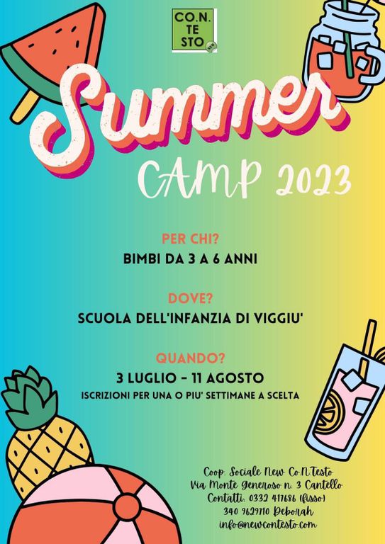 Anche quest’anno la cooperativa sociale New Con.Te.Sto trova la collaborazione dell’amministrazione comunale di Viggiù per il suo Summer Camp.