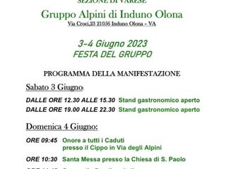 Sabato 3 e domenica 4 giugno torna ad Induno Olona, in via Croci 23, la festa organizzata dal Gruppo Alpini.