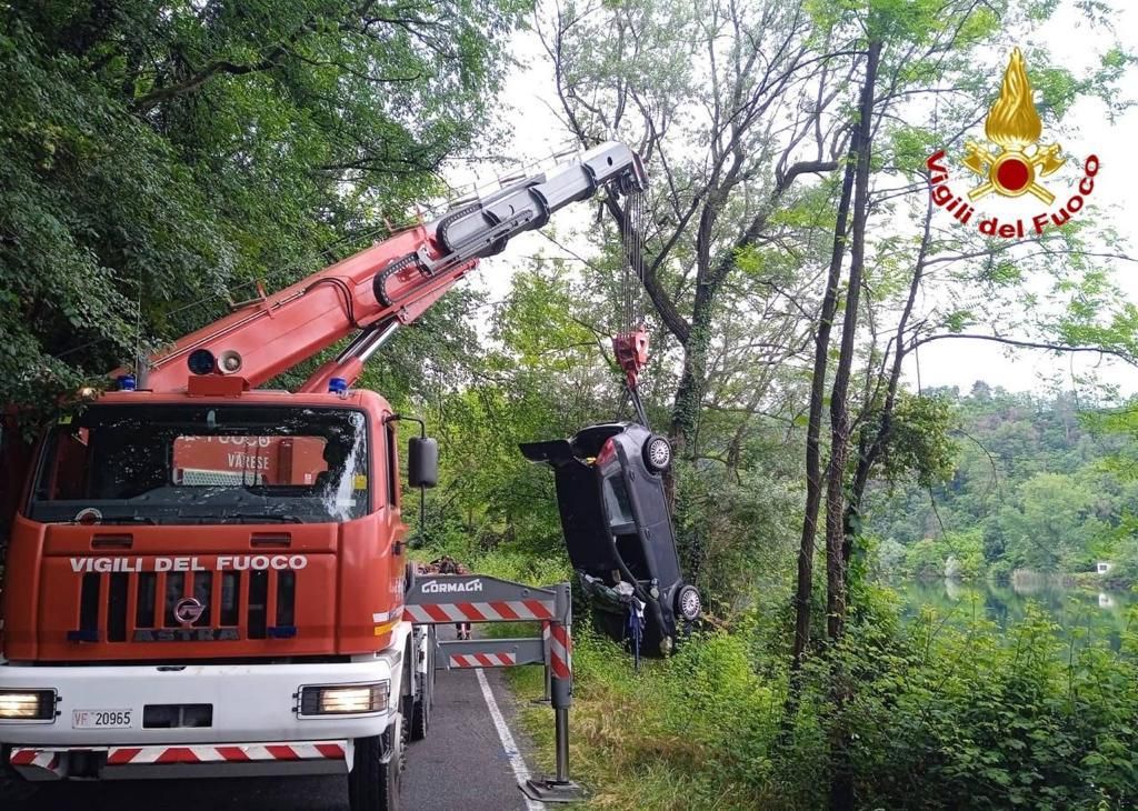 FOTO - Esce di strada e finisce nel fiume. Recuperato dai vigili del fuoco