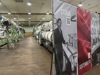 Gianni Brugnoli – che è vicepresidente di Confindustria, oggi accanto a lui il presidente Carlo Bonomi - accoglie nell’azienda tessile che oggi celebra il compleanno con i nuovi pannelli solari: l’attenzione all’ambiente è sempre stata centrale. Molto tempo fa si affrontava l’estate con blocchi di ghiaccio per creare umidità; con l’attuale impianto si riesce a garantire sempre i 24 gradi con 60% di umidità 365 giorni all’anno.