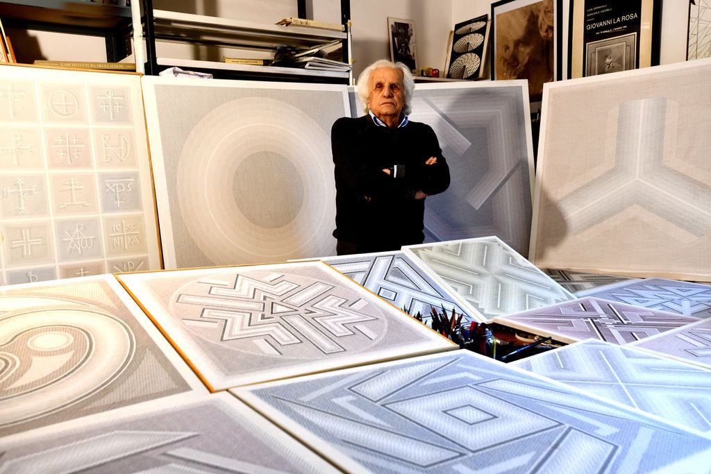 Il volume ripercorre l'esperienza artistica dalle prime esperienze come scenografo presso il teatro greco di Siracusa negli anni Cinquanta, fino agli ultimi lavori dedicati alla geometria piana, passando attraverso le diverse fasi di ricerca che affondano nello studio dei piani sovrapposti, degli alfabeti e del segno, tratto ormai distintivo dell'artista.
