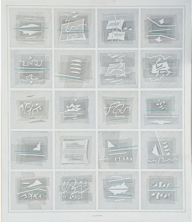 In oltre cinquant'anni di lavoro ha sperimentato diverse fasi ed evoluzioni, legate da alcune caratteristiche costanti che, come un filo rosso, tengono insieme con coerenza tutto il suo percorso. La linea è sicuramente l'elemento compositivo prescelto, che sviluppa fin dal tratteggio minuzioso dei primi lavori fino alle opere più mature astratte, passando attraverso un'analisi degli alfabeti. Il rapporto con la scrittura da un lato, e la tensione all'astrazione geometrica dall'altro, sono ulteriori aspetti fondativi del suo lavoro, che si nutre di riferimenti e relazioni con grandi maestri del Novecento italiano. Infine, la precisione del tratto, che ha spinto Bruno Munari a paragonarlo ad un computer, è bilanciata da un gesto artigianale, da amanuense.