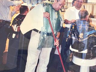 Scritto che c’è anche un po’ di Milan tra pettini e rasoi («Sapete chi veniva sempre prima di trasferirsi? Il "Gegio", Germano Lanzoni, alias il Milanese Imbruttito e speaker di San Siro. Sua moglie era di Varese e lui passa ancora oggi a salutarmi…»), a guardare sulla sinistra scende pure una lacrima ancora fresca, mista tuttavia a un sorriso. Due foto le fonti: la prima con i "Fichi" Bruno Arena e Max Cavallari insieme a Roberto Benigni, e la seconda con il solo Max mentre spazza, scopa alla mano, i capelli da terra, proprio dietro alle sedie dove si “opera”: «Era qui a farsi un taglio e ha voluto essere immortalato in una mansione "tipica"… Lui e Bruno non mancavano mai, fin dai tempi in cui c’era Renato…».