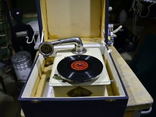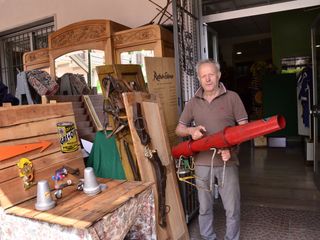 Da Retrò Store si trova di tutto, dal “frate” scaldaletto con il suo bracerino per la cenere, alla sveglia del nonno, dal pupazzetto Lenci del monello alla Gavroche al cannone a gas per spaventare gli uccelli e scacciarli dai coltivi, che Fioroli impugna come un bazooka per la fotografia di rito, fino a grammofoni, radio, bauli e valigie, cilindri e abiti vintage.