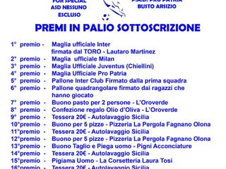 I cancelli saranno aperti alle ore 15, i biglietti si possono avere con un'offerta a partire da 5 euro e il tagliando servirà per accarezzare la fortuna per la sottoscrizione a premi. In palio le maglie che fanno sognare i tifosi: in pole position quella firmata da Lautaro Martinez che richiama gli interisti, ma poi le maglie delle altre squadre, i palloni firmati e tanti premi.