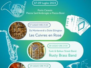 Ad aprire la seconda edizione, venerdì 7 luglio alle 21, in piazza Sant'Ambrogio, saranno Les Cuivres en Rose, quintetto di ottoni di recente formazione completamente al femminile, che proporrà un excursus storico-musicale con brani da Monteverdi a Duke Ellington.