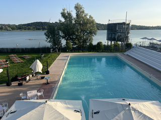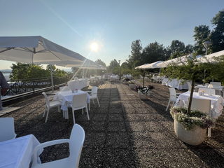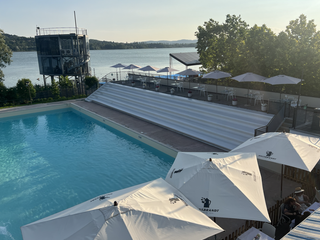 Quella dell'eleganza, dote che raramente si è potuta associare allo storico lido: i muri e le colonne bianche, il patio sistemato e che ora pare una vera "passeggiata" verso il lago, un'organizzazione diversa degli spazi che permette di trovare mille angoli per gustarsi atmosfera e paesaggio e soprattutto l'apertura della splendida e sofisticata terrazza con vista a 360° su lago, parco Zanzi e montagne.