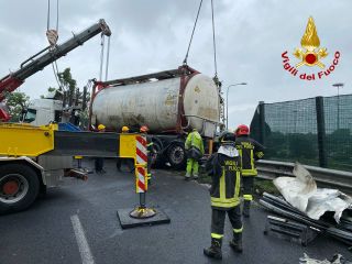 Il video delle tre autogrù che hanno recuperato la grossa cisterna finita su un fianco allo svincolo tra A8 e 336 di Malpensa. Il lavoro dei vigili del fuoco e di due ditte specializzate prosegue per la riapertura totale dell'importante collegamento in uno snodo cruciale della viabilità provinciale