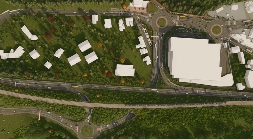 Ed ecco, così, le auto che si muovono in arrivo dall'Autolaghi, imboccano lo svincolo che porta verso la rotonda dell'Esselunga in via Gasparotto e, subito dopo il ponte della ferrovia, si immettono nella nuova via Selene che, pur continuando a essere immersa nel verde (si nota un pista ciclopedonale su un lato della strada, campi, prati, trattori che raccolgono il fieno accanto alle aziende esistenti), conduce in direzione di Schianno.