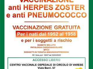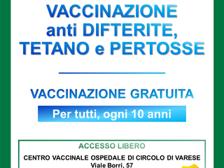 Si potranno effettuare le seguenti vaccinazioni: anti Difterite, Tetano e Pertosse per tutti, ogni 10 anni; anti Herpes Zoster (fuoco di Sant'Antonio) e anti-pneumococco per i nati tra il 1952 e il 1958; anti-papilloma Virus per le ragazze tra i 18 e i 26 anni.