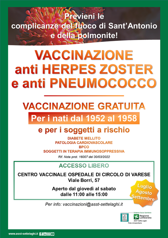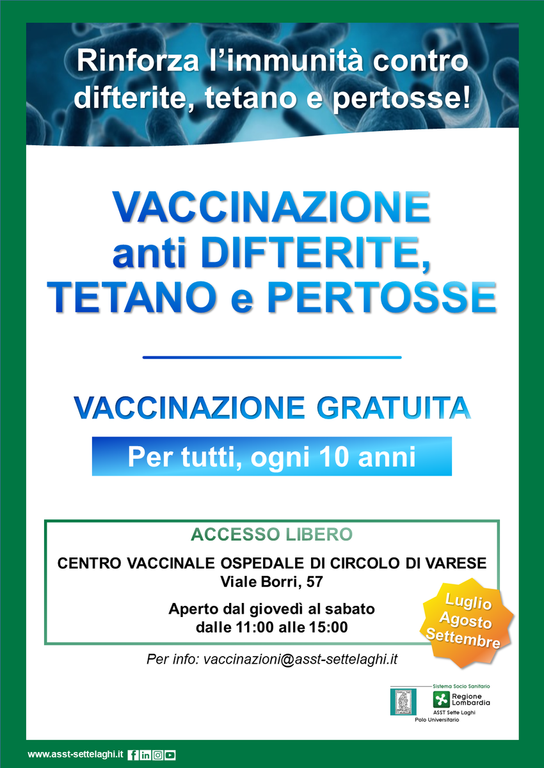 Proseguono gli open day vaccinali nella sede di Asst Sette Laghi. Ecco gli appuntamenti – nelle locandine allegate in coda al testo – per i mesi di luglio, agosto e settembre.