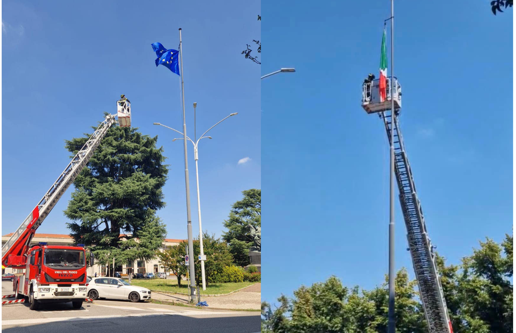 Lo racconta il Comune di Busto Arsizio, con una piccola operazione che diventa però anche molto simbolica. In piazza Volontari della Libertà, dunque alla stazione Centrale, con il coordinamento dell’assessore alla sicurezza Salvatore Loschiavo, è sceso in campo un team così composto: Vigili del fuoco, Carabinieri e Agesp. Missione, «sostituire le bandiere ormai logore issate sui pennoni della piazza».