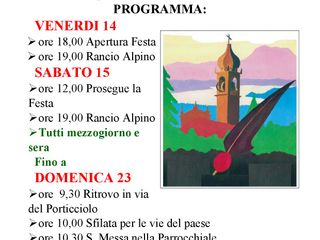 Dopo 10 giorni di festa, ecco la celebrazione del giorno di chiusura, domenica 23 luglio: dopo il ritrovo alle 9.30 presso il luogo della festa, ci sarà la sfilata per le vie del paese, a cui parteciperanno diversi gruppi Alpini della provincia e autorità locali, fino alla chiesa parrocchiale di Capolago, dove verrà celebrata la messa.