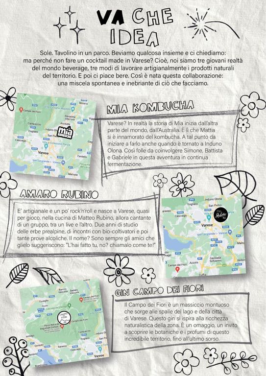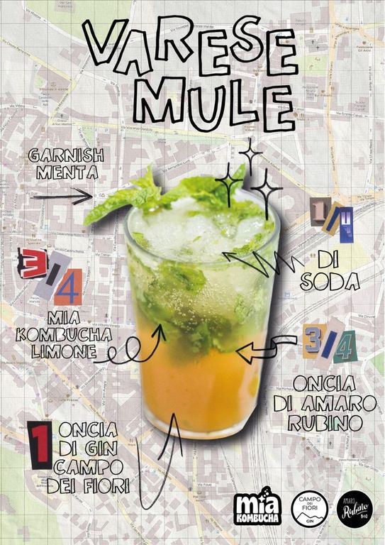 Si chiama Varese Mule ed è un mix semplice, fatto apposta per poter essere replicato a casa e dai locali che vogliano “adottarlo”: tre parti di Mia Kombucha al limone, tre parti di Rubino, una parte di Campo dei Fiori Gin, un po’ di soda e una guarnizione di menta.