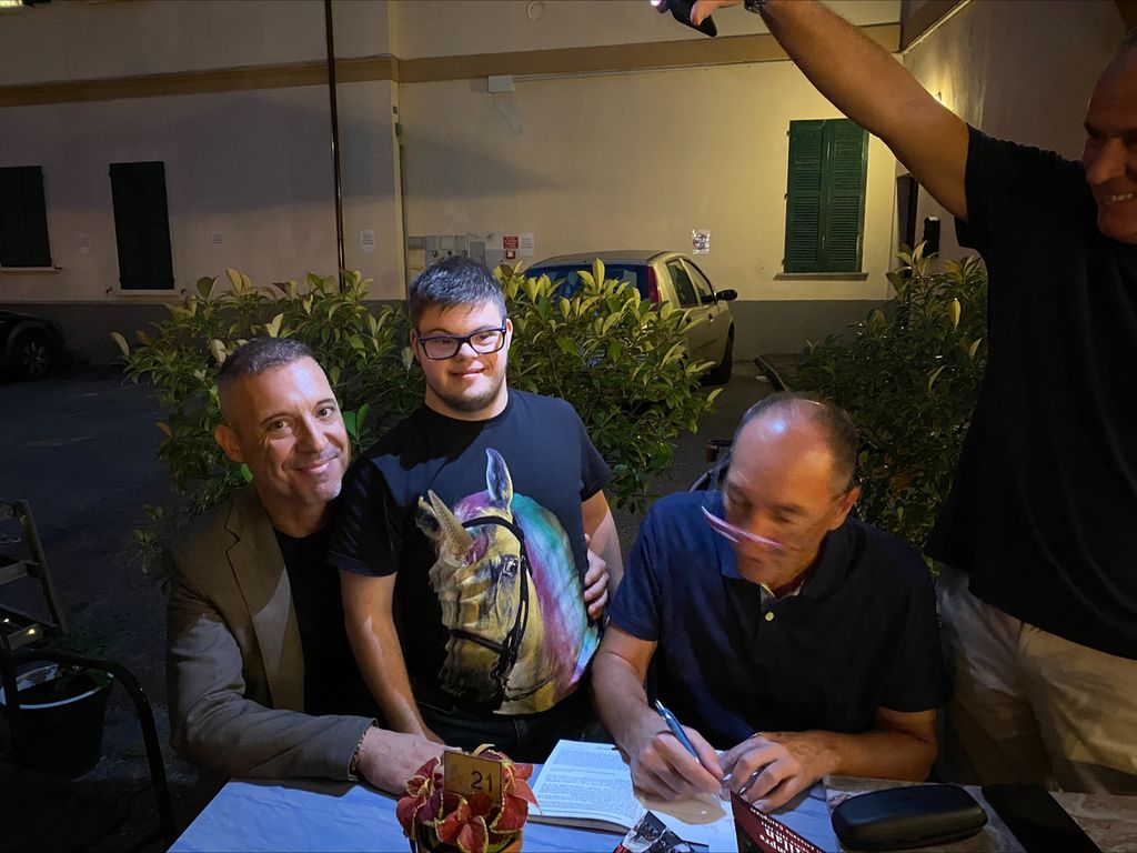 «Con Silvano e Max ci siamo conosciuti meglio in questo periodo perché abbiamo fatto un evento bellissimo – ha detto Antonello riferendosi al torneo “Calciamo la disabilità” di due settimane fa (leggi qui) -, ho capito le loro esigenze e che sono persone di cuore, umili». E da qui la decisione di devolvere loro il ricavato della vendita dei libri, in modo che possano comprarsi la loro casa, in cui sono in affitto dal 1999.