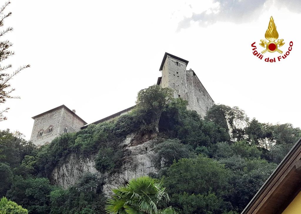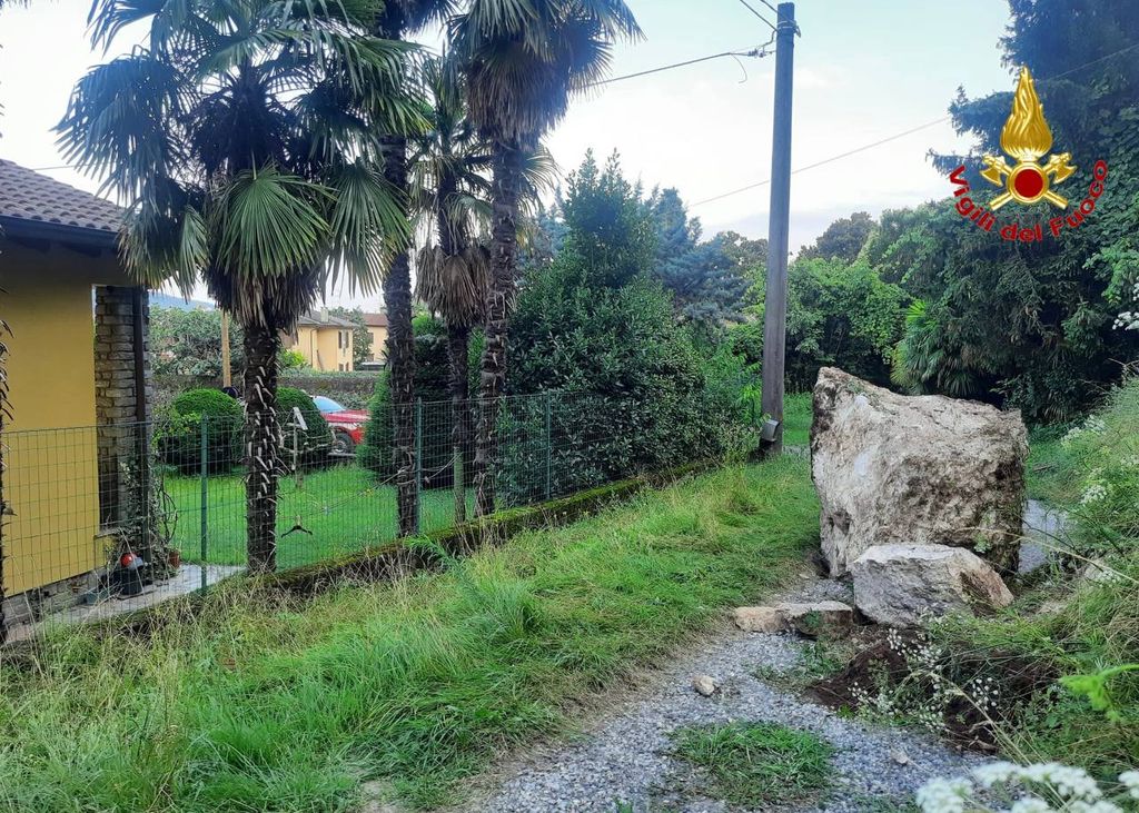 FOTO. Angera, grosso macigno si stacca ai piedi della Rocca: due famiglie evacuate