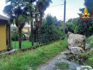 FOTO. Angera, grosso macigno si stacca ai piedi della Rocca: due famiglie evacuate