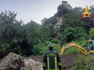 Frana ai piedi della Rocca di Angera. L'allarme è scattato intorno alle 19 di questa sera, all'altezza di via Torrani, a valle della celebre rocca, simbolo del paese.