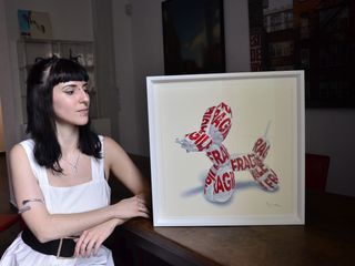 La incontriamo nella sede principale della Galleria Punto sull’Arte, in viale Sant’Antonio 59/61 a Varese, dove ha portato “Icons”, l’ultima opera da poco terminata, un “balloon dog” perfettamente impacchettato con uno scotch dalla scritta “fragile”, dalle dimensioni di 40x40. L’artista milanese espone anche alcune sue opere nella mostra in corso in galleria, dal titolo “<20 15x15/20x20” e ha un quadro in permanenza al Punto Pop di Punto sull’Arte, in via San Martino della Battaglia 3 a Varese. Elegante in bianco e nero, molti piercing e tatuaggi, un ciondolo a richiamare l’amore per i gatti, Valentina parla della sua passione per il disegno, nata, si può dire, con lei.