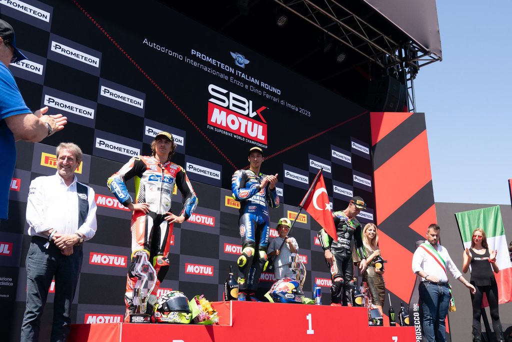 Grande prestazione per Toprak Razgatlioglu che, nella prima delle due gare domenicali di Superbike, trionfa relegando in seconda posizione uno spumeggiante Bautista. Locatelli, primo per metà gara, chiude il podio, rimanendo davanti a Rea.