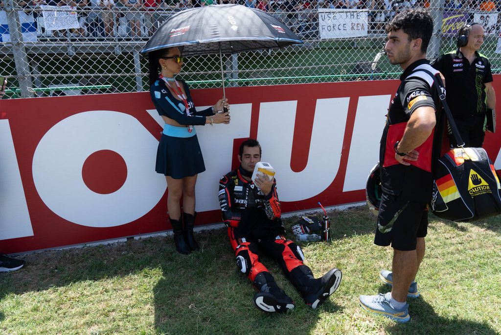 L'Autodromo di Imola è stato un catino bollente nella domenica della Superbike. La temperatura dell'aria di oltre i 30 gradi già in mattinata, quella dell'asfalto ha sorpassato i 50. Scontato il superamento del record di ieri, quando in pista sono stati toccati i 58,6 gradi.