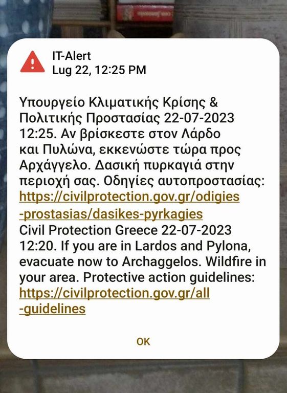 Ancora in attesa di capire che cosa accadrà nelle prossime ore: «Probabilmente sarà un rimpatrio, gli hotel sono stati evacuati. Posto non ce n’è più». Intanto Rodi continua a bruciare.