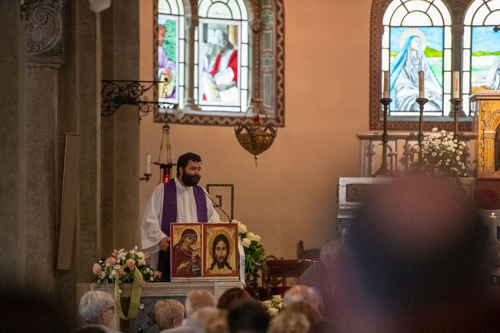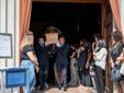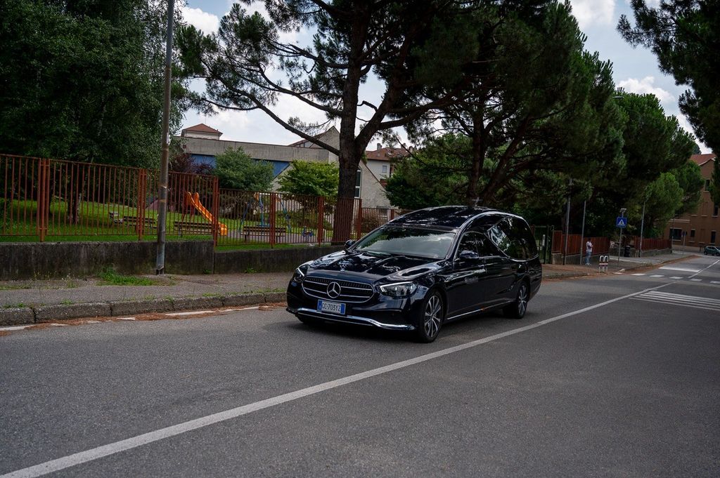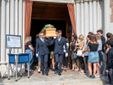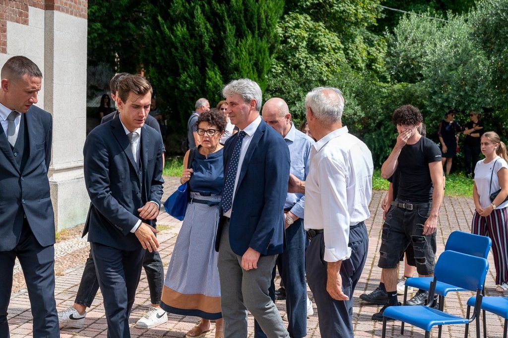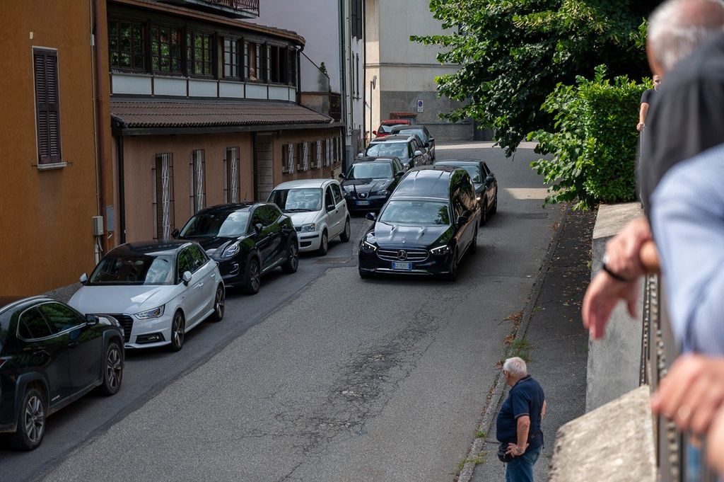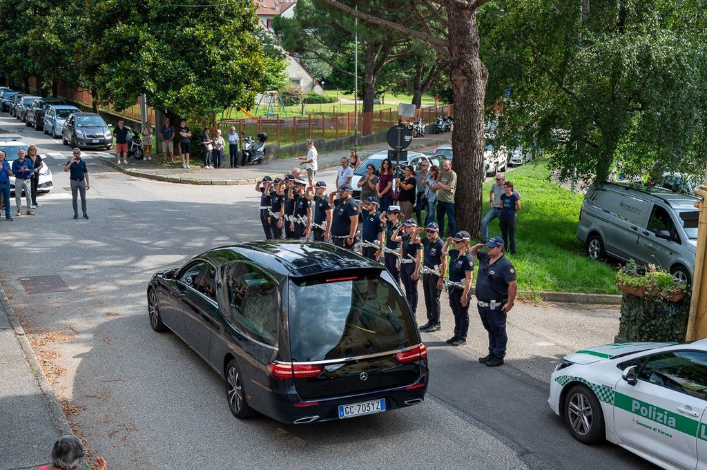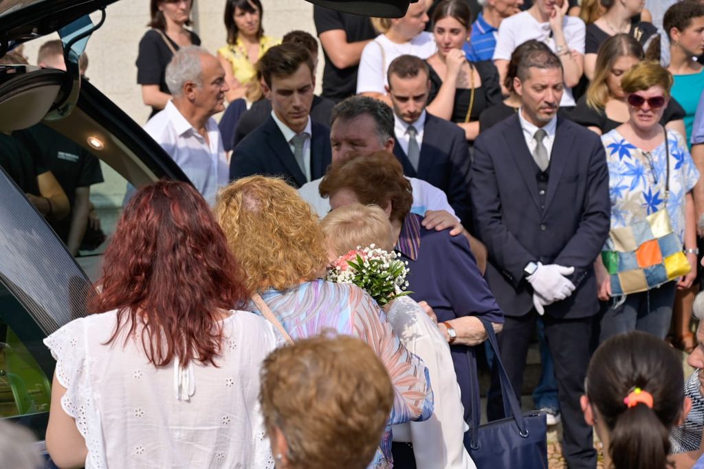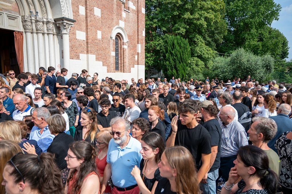 L'uscita dalla chiesa di Valle Olona della bara di Chiara, coperta dai fiori e dalla maglia della sua squadra di pallavolo (Foto di Alessandro Galbiati)