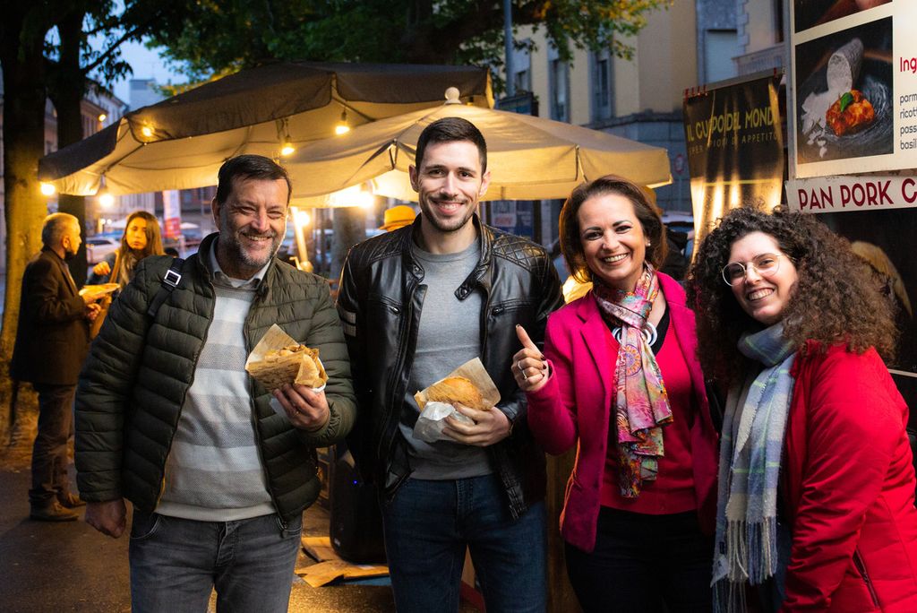 Gusteremo un’ampia selezione di sapori italiani, a partire da arrosticini abruzzesi, olive ascolane proposti da Apetitosa, oppure pane e panelle, pane cunzato e pane con milza, mini arancini, carne di cavallo, cannoli siciliani riempiti al momento e cassatine de I sapori di Sicilia; pan tometta, pan tartufo, pan pork vengono preparati al momento da Pan Pan, mentre da Mordicchio on the Road potremo gustare panzerotti, gnocco fritto con salumi, pinsa; continuiamo con i piatti tipici del Piemonte, come raviolini del Plin, hamburger e battuta di Fassona, stracotto al Nebbiolo, vitello tonnato, tomahawk di Manzo, salsiccia di Bra preparati da Sound Break, mentre chi preferisce il gusto del mare può rivolgersi a Kraken chiedendo frittura di pesce e specialità con salmone, moscardini, pesce spada, oppure le specialità con polpo di Emotional Food Truck. Non mancheranno infine polpette di carne e verdure, vini e cocktail di Na Pinta vineria vagabonda e La Giardinetta.