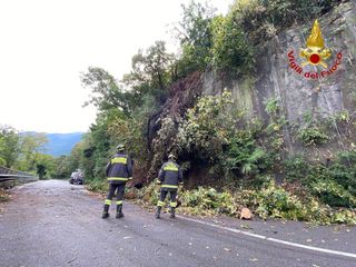 Sul posto i vigili del fuoco che hanno tagliato le piante e che stanno mettendo in sicurezza l'area: sul luogo dello smottamento anche il sindaco Passera e i tecnici Anas. Saranno necessarie delle opere di disgaggio, oltre alla rimozione di alcuni alberi