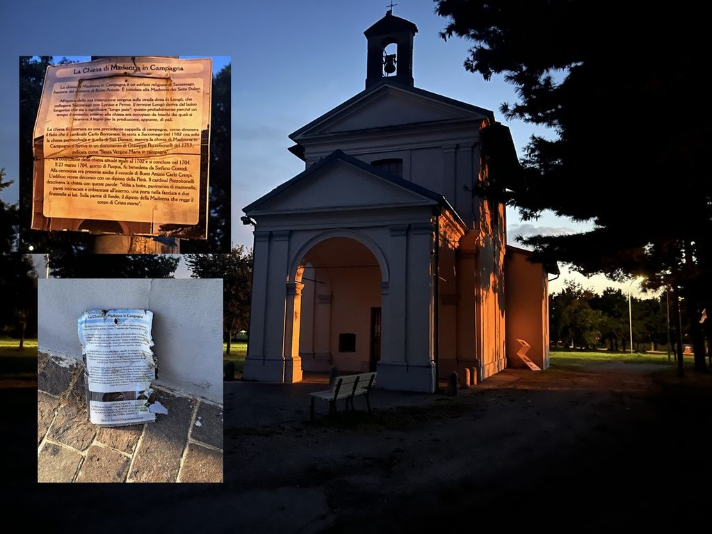 Un'altra ferita alla chiesa della Madonna della Campagna. Trovato oggi a terra il cartello esplicativo della storia della chiesa di Sacconago.