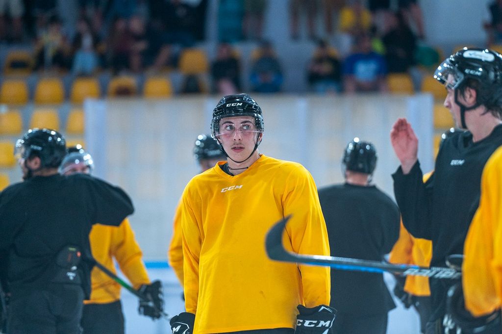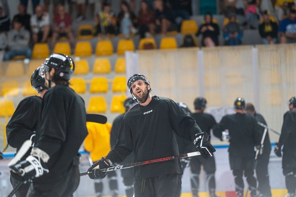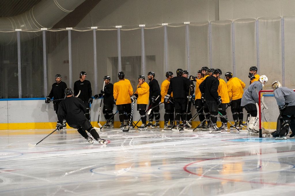 È iniziata, finalmente, dopo due giorni di ritardo a causa di una macchina del ghiaccio che ci ha provato in tutti i modi a mettere i bastoni fra le ruote all’incipit, una nuova stagione giallonera. I ventiquattro giocatori (3 portieri, 8 difensori, 13 attaccanti) sono scesi in pista alle 20.30 esatti agli ordini di coach Niklas Czarnecki.