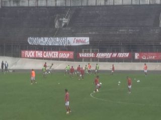 Prima di cominciare, va sottolineato come questa sia la prima partita da sempre senza curva per il Varese. Dopo le squalifiche, saranno due gli anni in cui gli ultrà resteranno lontani dallo stadio. Al di là di tutto, è un evento storico. Al posto di quel vuoto c'è questo striscione: «Assenti ai vostri occhi, presenti nei vostri incubi» firmato "diffidati".