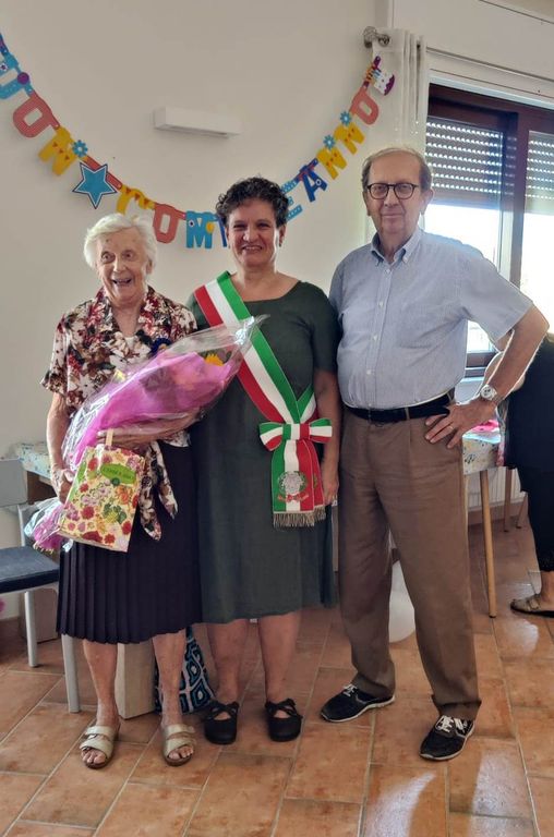 Anche nel giorno della sua festa, ha accolto con il suo inconfondibile sorriso e un poco di commozione, l’arrivo del Vice Sindaco Borroni e dell’Assessore Caldiroli che hanno voluto consegnarle personalmente un bel mazzo di fiori, complimentandosi a nome dell’Amministrazione e di tutta la città di questo splendido traguardo e augurando ancora tanta salute serenità e gioia per i giorni a venire, per lei e per la sua bellissima famiglia.