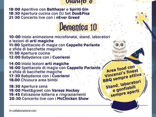 Grande divertimento domenica: dalle 10, e per tutto il pomeriggio, possibilità per i più piccini di trasformarsi in un vero mago con laboratori, spettacoli, giochi a tema e scuola di magia.