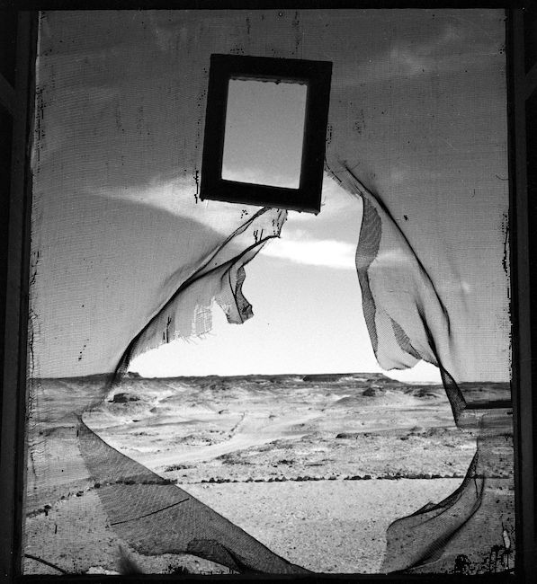 La cifra surrealista torna anche nelle sue nature morte o nei paesaggi che arricchiscono il corpus del suo lavoro quando si trasferisce in Egitto, come nel caso di “Portrait of Space” – ritratto dello spazio – scattato verso il deserto.