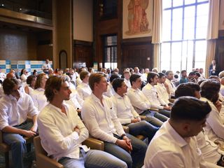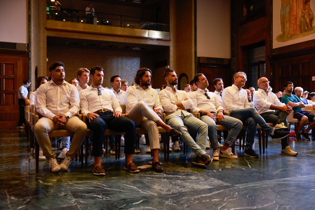 Capitan Vanetti si conferma capitano anche al microfono, davanti a una sala stracolma: «Bellissimo rivedere i volti dei due trionfi in un anno, si comincia con un po' di pressione perché vorremmo riconfermarci ma vedere quei ragazzi lì (i bambini in sala) è il successo più bello della scorsa stagione. La cosa più importante è l'amalgama: ripartiamo con consapevolezza, carica e sapendo che il nostro palaghiaccio sarà un fortino. L'entusiasmo ci farà partire alla grande».