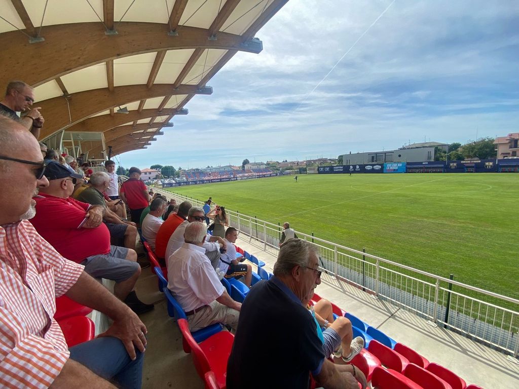 41' Il sole sta cuocendo gli spettatori che riempiono la tribuna di Venegono