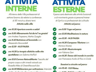 rofessionisti e professioniste proporranno al pubblico attività sportive, dedicate al benessere, e conferenze per rispondere alle tante curiosità dei cittadini in merito alle discipline e venire incontro alle più diverse esigenze. L’evento inizierà alle ore 10.30 e proseguirà fino alle 17.30, con appuntamenti e dimostrazioni cadenzati nel tempo, per dare ai presenti la possibilità di partecipare al maggior numero di attività possibile, nelle sale interne di Villa Oliva e negli ampi spazi all’aperto, nel parco della Magana, dove si svolgeranno le sessioni a circuito. Nel dettaglio, il programma.