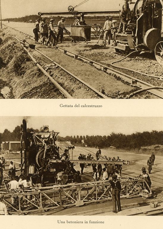 Alla fine 4.000 operai costruirono 219 manufatti, con 200mila quintali di cemento, 65mila metri cubi di ghiaia (provenienti dalla Cave Puricelli di Bisuschio) e 32.500 metri cubi di sabbia. Non mancarono cinque rivoluzionarie betoniere Koering-Paving, importate dall’America, che in un giorno preparavano 1.200 metri cubi di calcestruzzo.